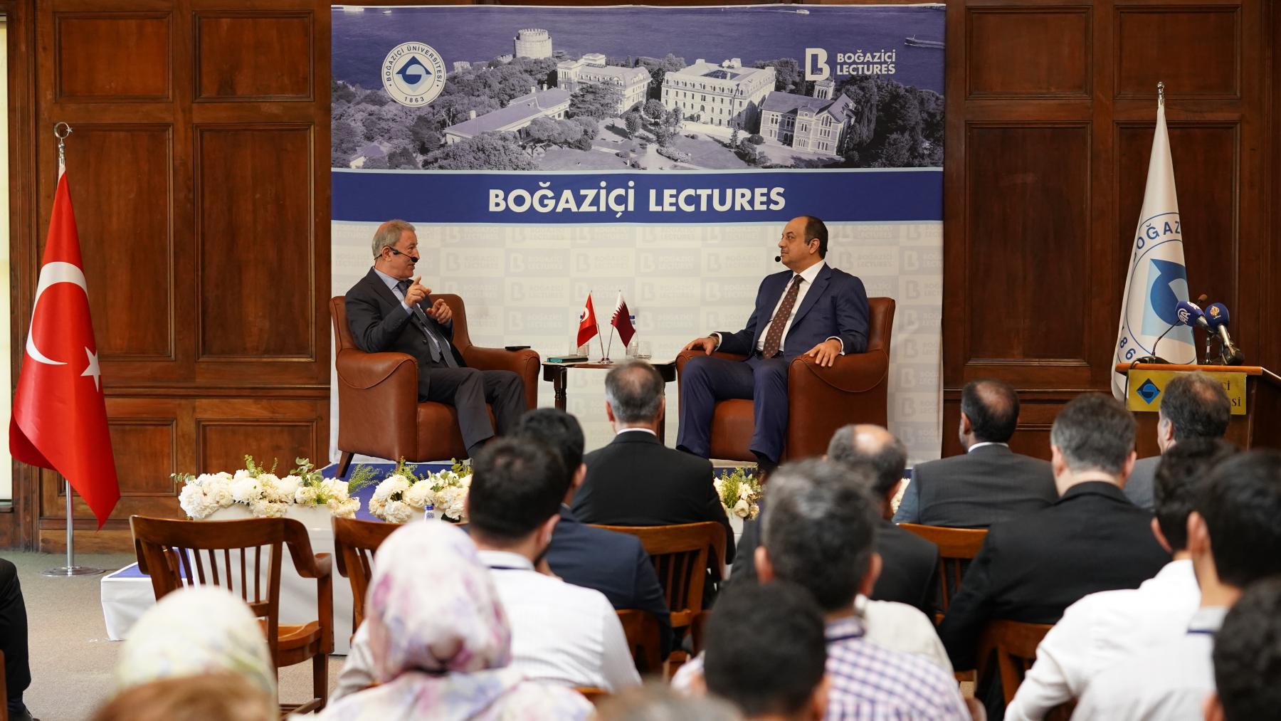 The Deputy Prime Minister and Minister of Defense of Qatar, Dr. Khalid Bin Mohamed Al Attiyah, and the Chairman of the Defense Committee of the Grand National Assembly of Türkiye and Boğaziçi Fellow in Global Studies, Dr. Hulusi Akar, were guests at the Boğaziçi Lectures. During the lecture titled “Global and Regional Challenges in the Middle East",” Minister Al Attiyah stated: “Our partnership with Türkiye goes far beyond ordinary cooperation; it is a strategic partnership. As Qatar, we will continue to support Türkiye in all areas, such as energy and trade.”