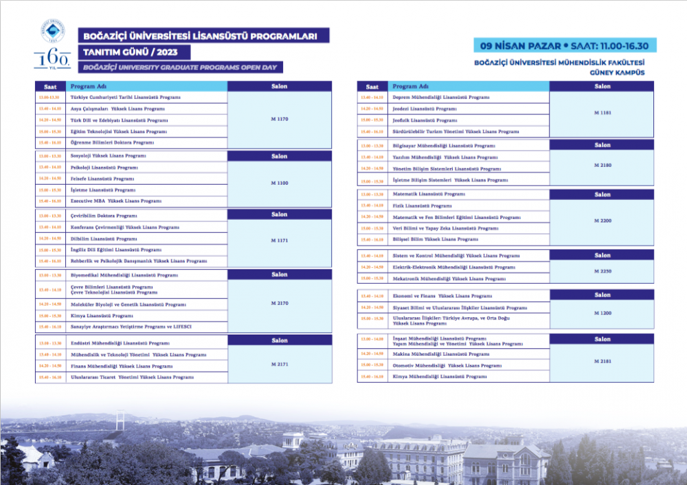 Boğaziçi Üniversitesi Lisansüstü Programları Tanıtım Günü 9 Nisan’da Güney Kampüs’te
