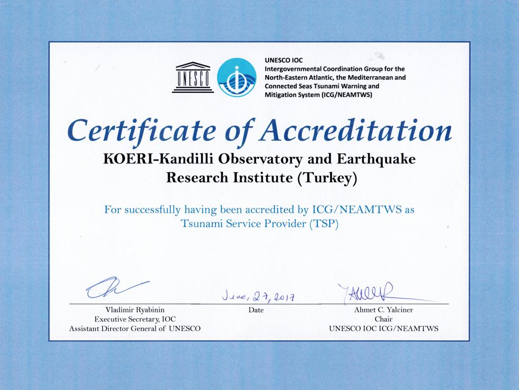 Kandilli Rasathanesi’ne ‘’Uluslararası Tsunami Merkezi’’ sertifikası