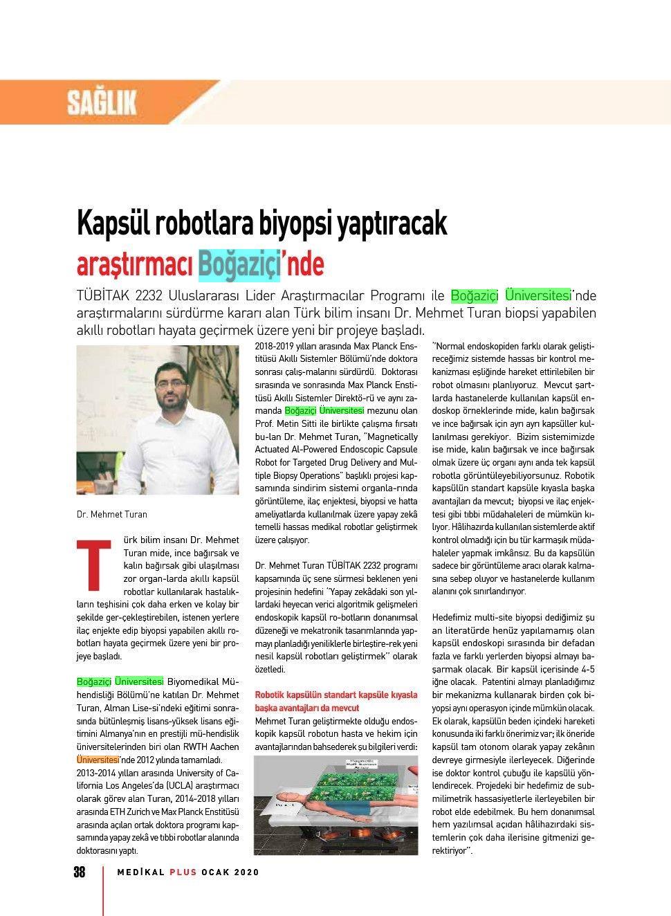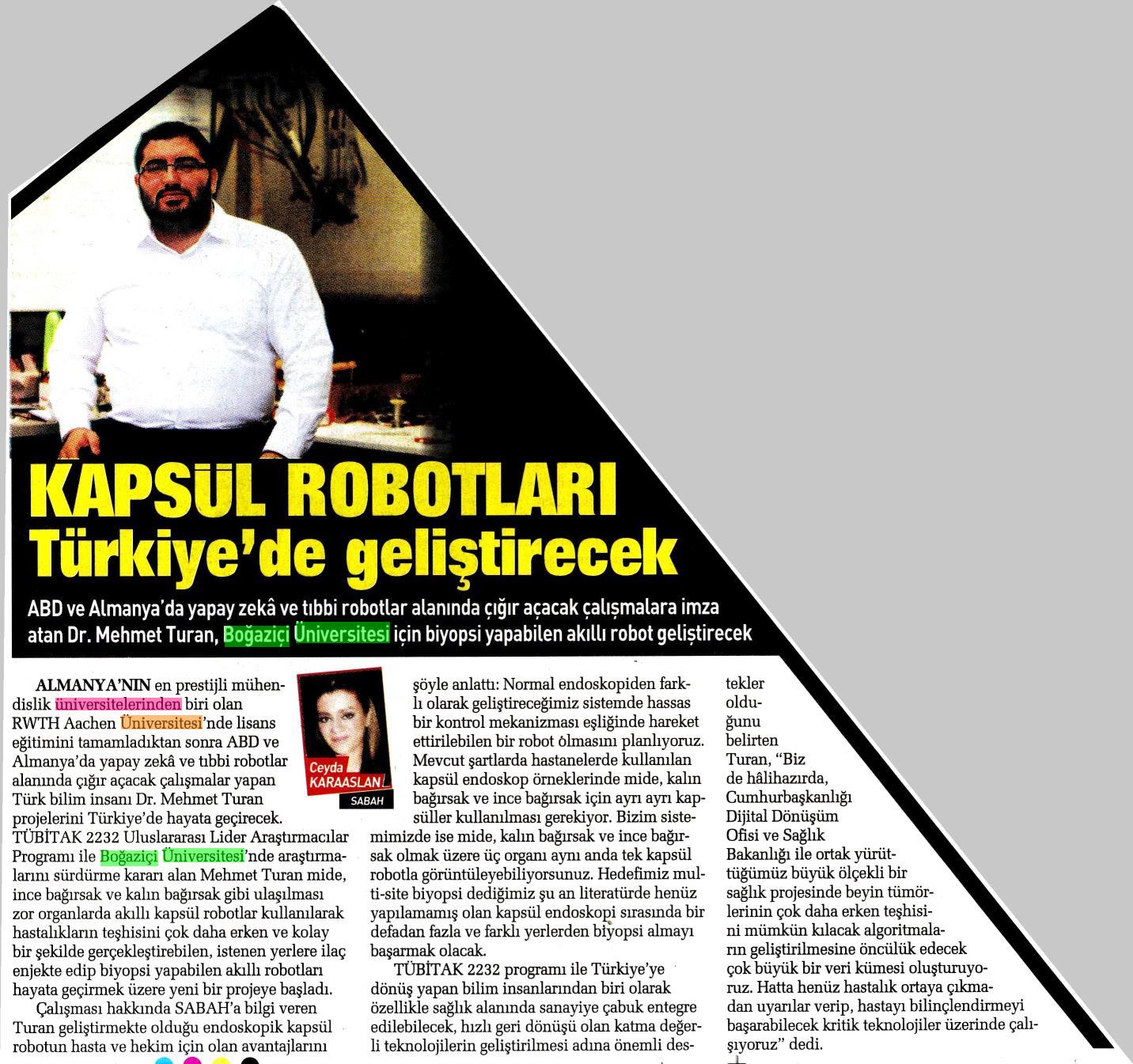 Kapsül robotlara biyopsi yaptıracak araştırmacı Boğaziçi'nde