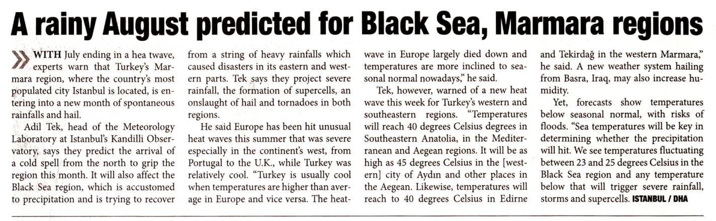 A rainy August predicted for Black Sea, Marmara Regions