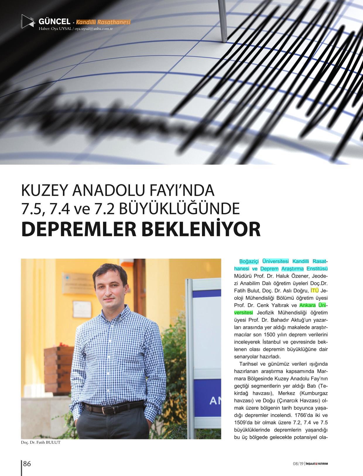 Kuzey Anadolu Fayı'nda 7.5, 7.4 ve 7.2 büyüklüğünde depremler bekleniyor