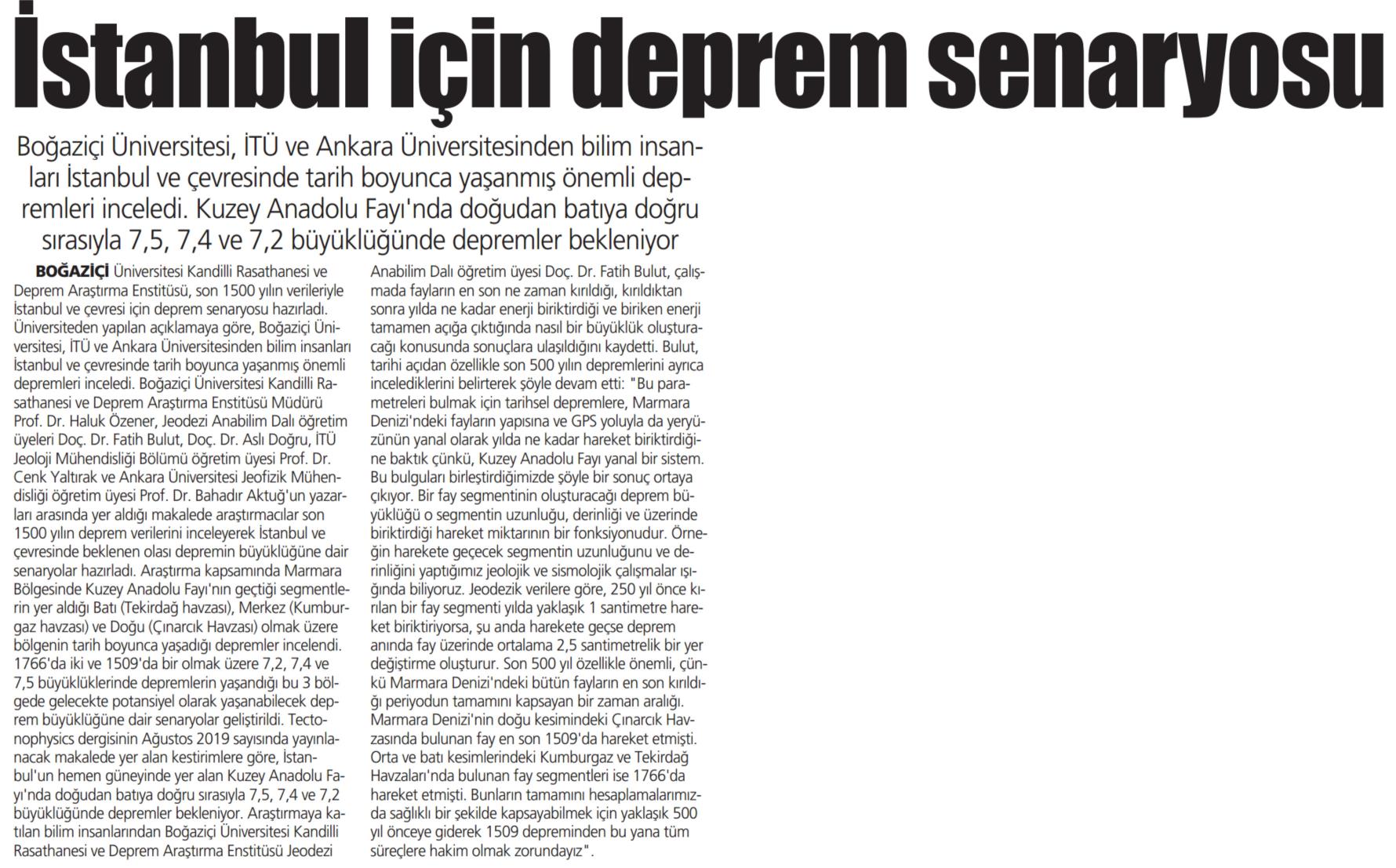 İstanbul için deprem senaryosu