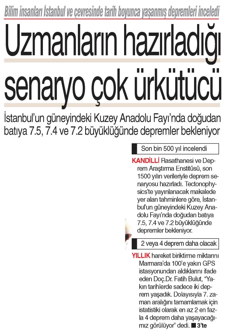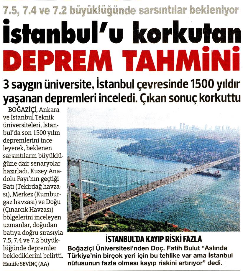 İstanbul'a 7.2'lik uyarı