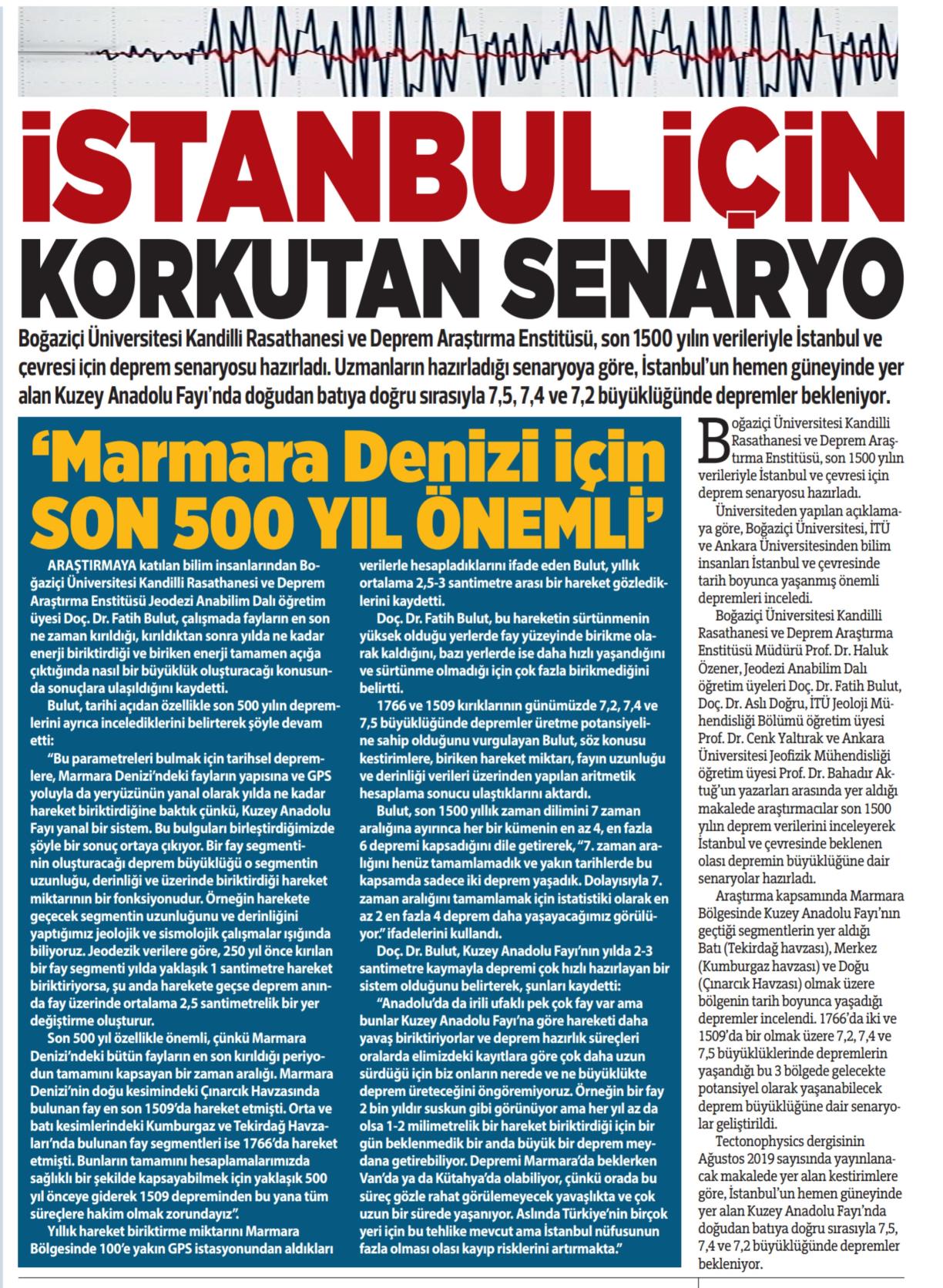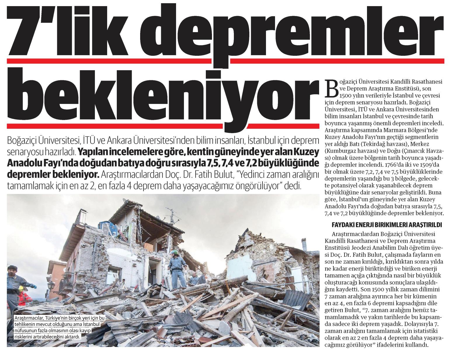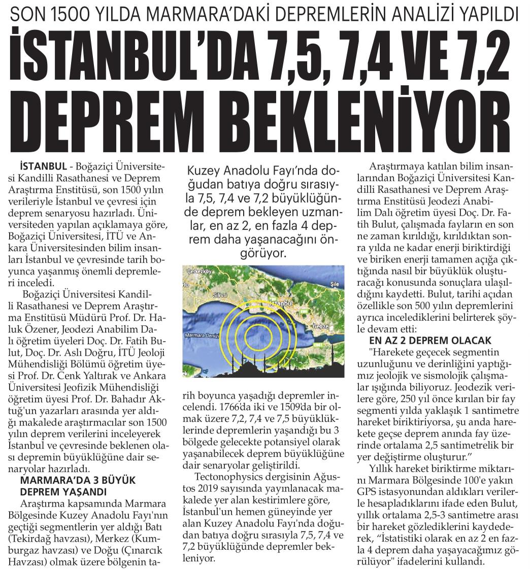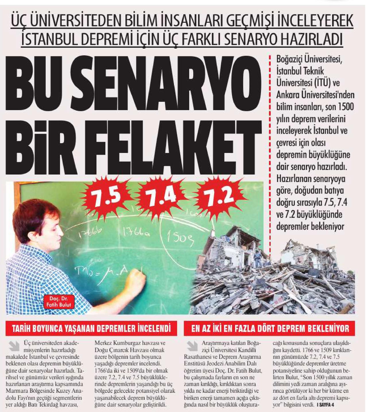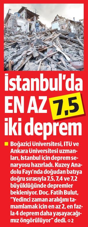 İstanbul'da 7.5, 7.4 ve 7.2 deprem bekleniyor