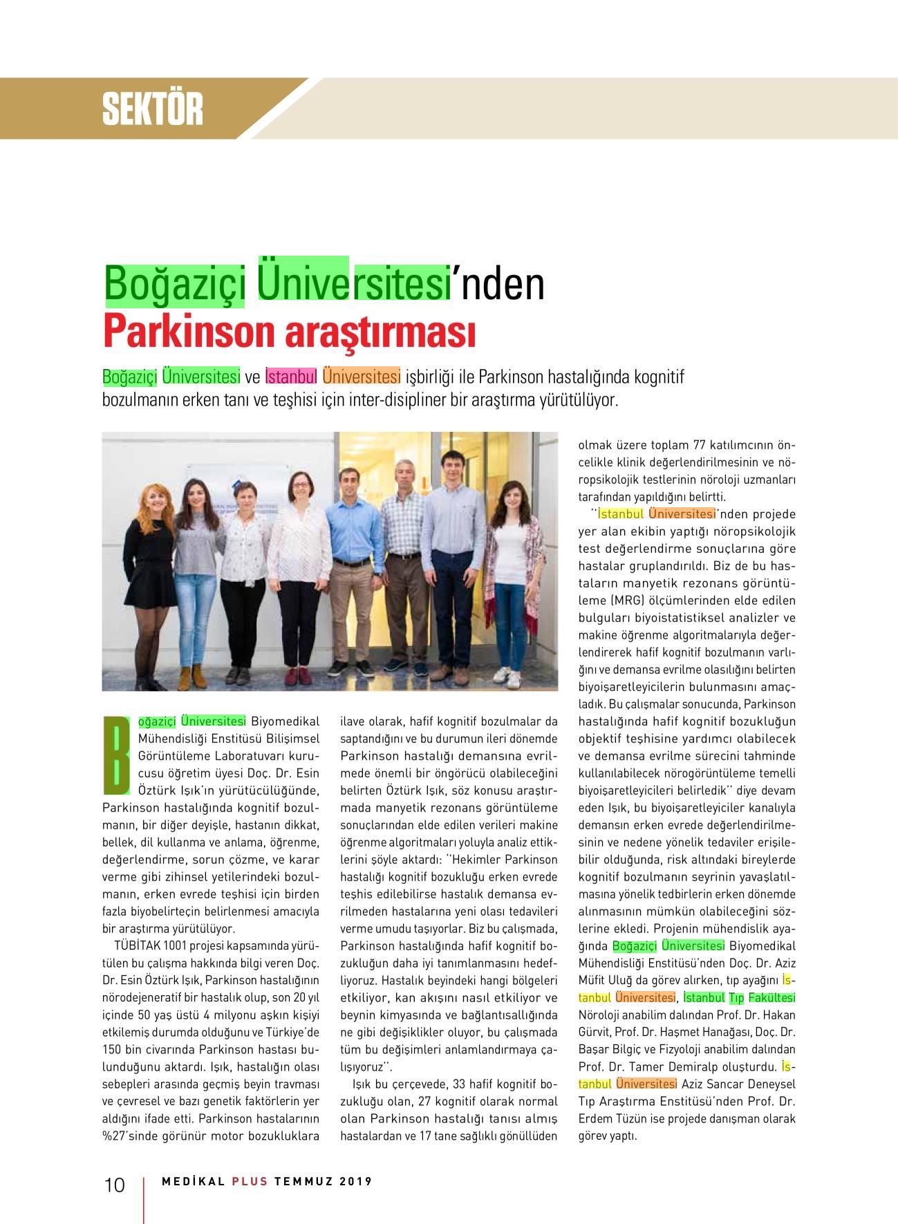 Boğaziçi Üniversitesi'nden parkinson araştırması