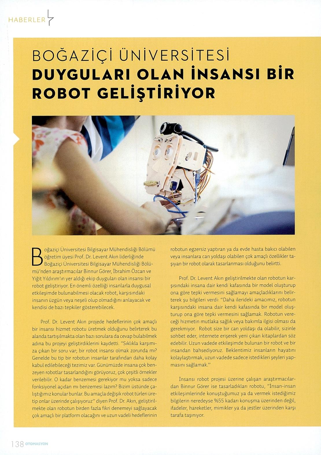 Boğaziçi Üniversitesi duyguları olan insansı bir robot geliştiriyor