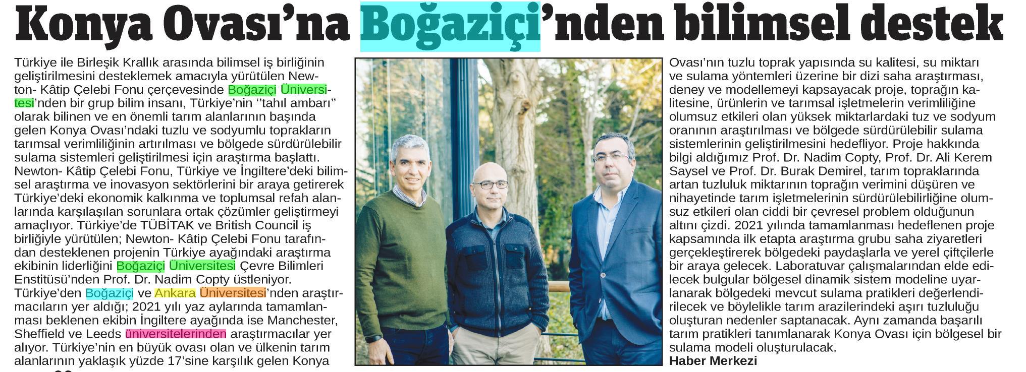 Konya Ovası'na Boğaziçi'nden bilimsel destek