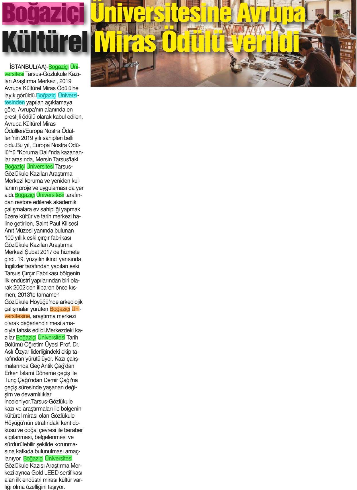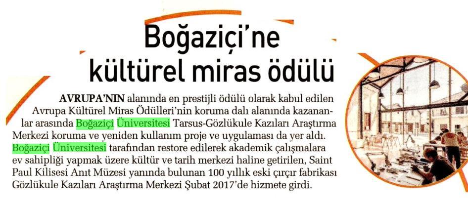 Boğaziçi Üniversitesi'ne kültürel miras ödülü