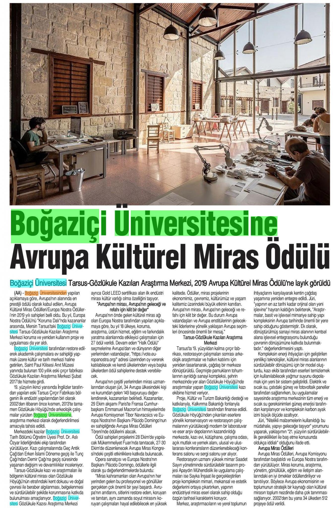 Boğaziçi Üniversitesi'ne Avrupa Kültürel Miras Ödülü