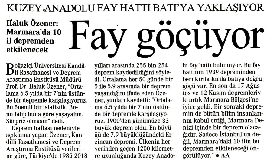 Kuzey Anadolu fay hattı Batı'ya yaklaşıyor
