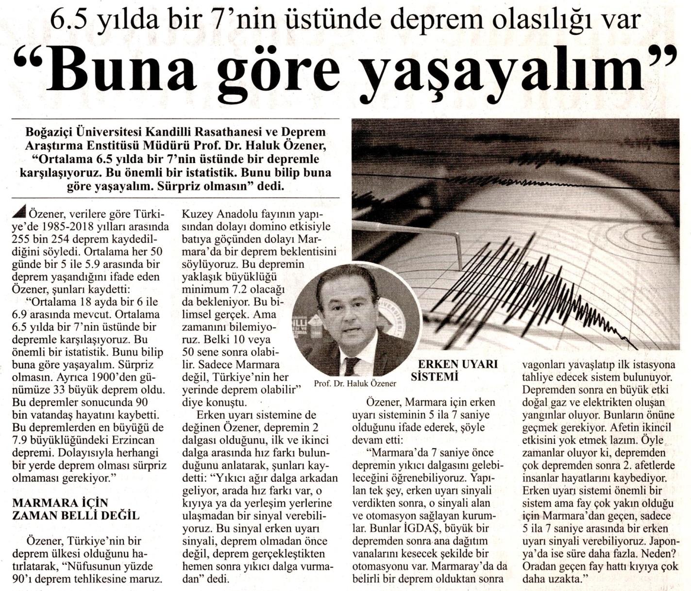 6.5 yılda bir 7'nin üstünde deprem olasılığı var