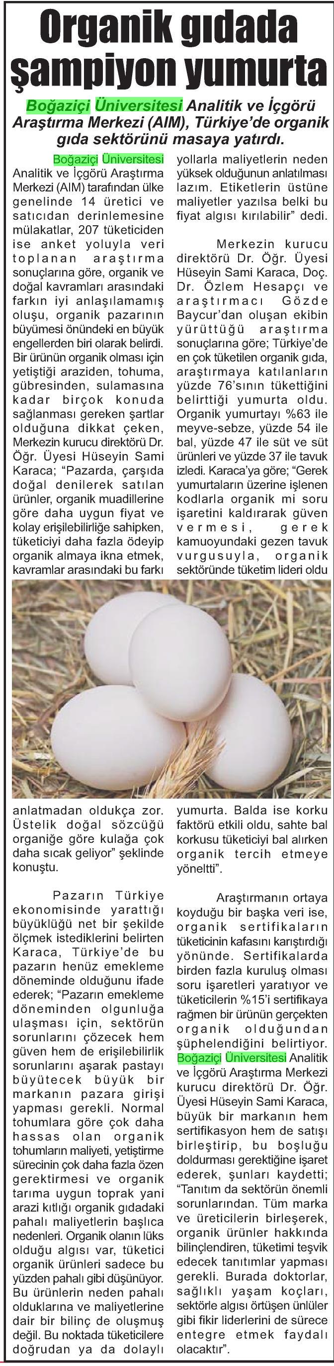 Organiğin şampiyonu yumurta