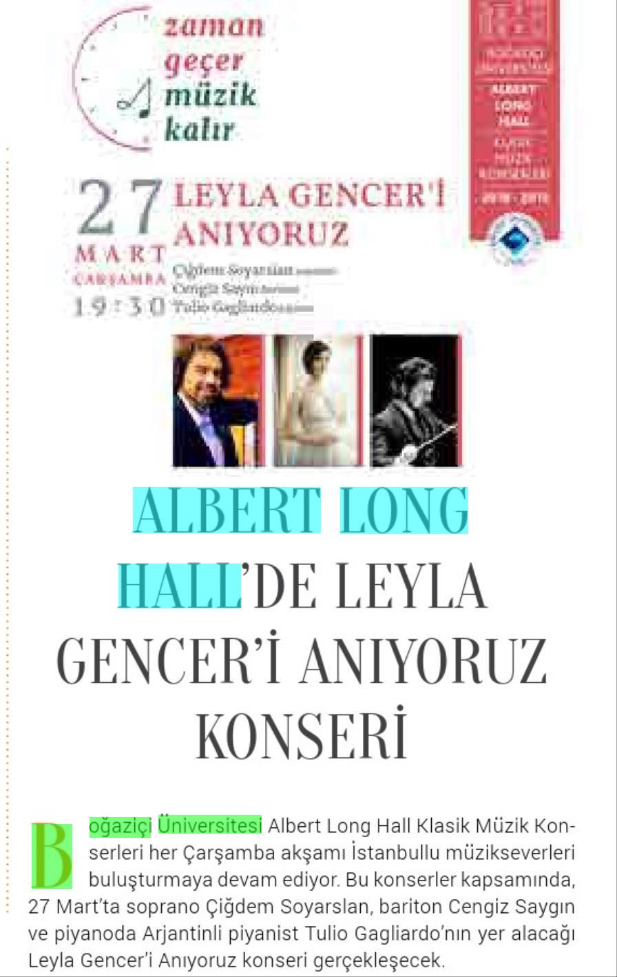 Albert Long Hall'de Leyla Gencer'i anıyoruz...
