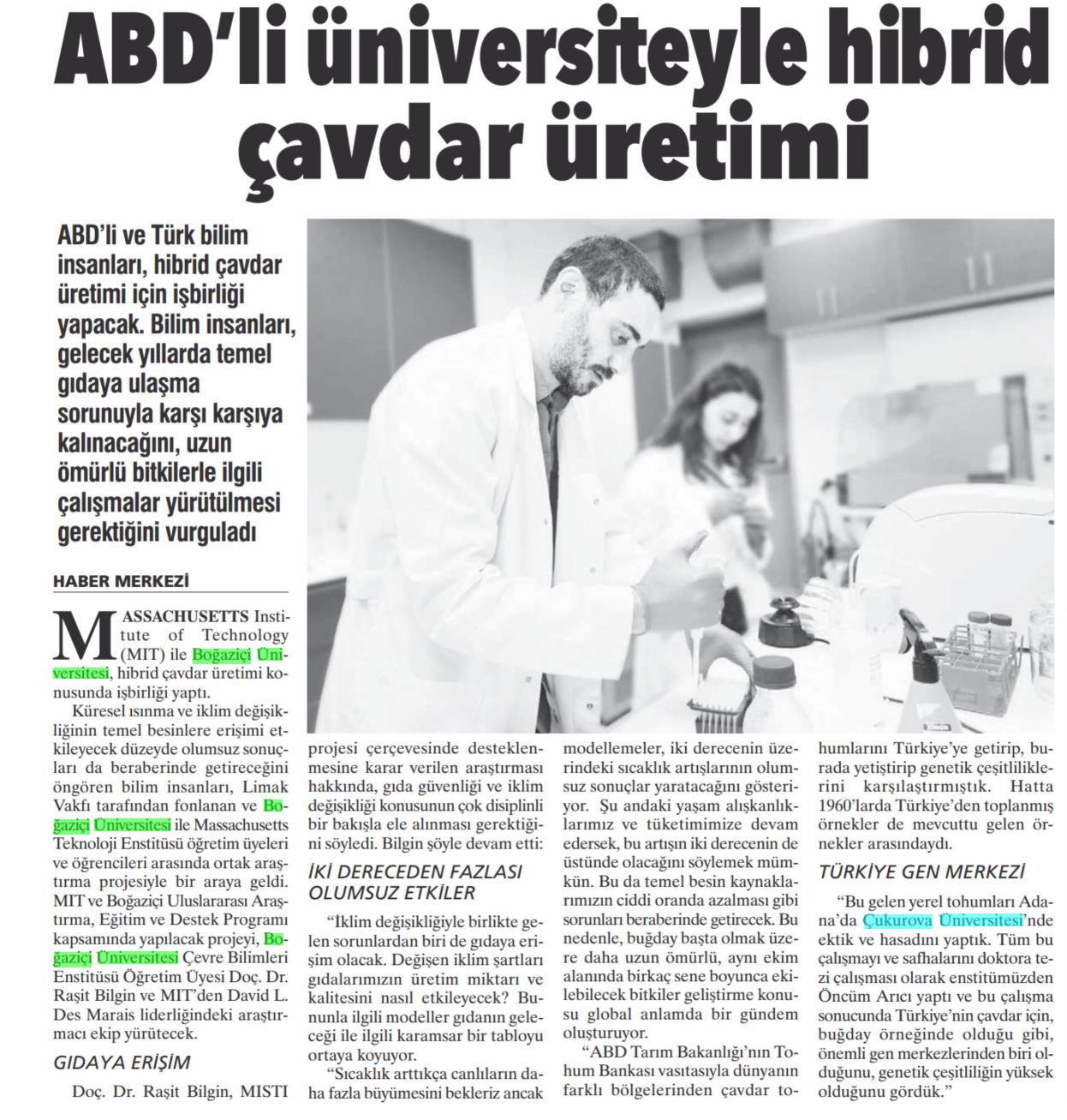 MIT ve Boğaziçi Üniversitesi hibrit çavdar için iş birliğine gittiler