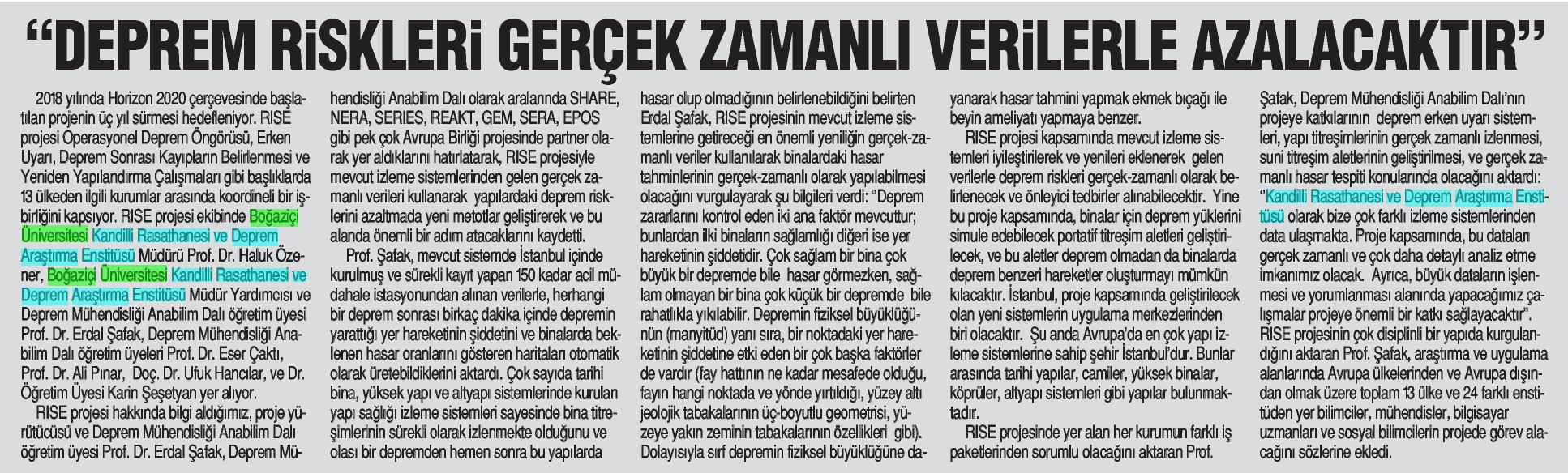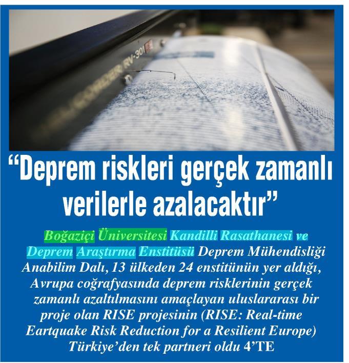 Deprem riskleri gerçek zamanlı verilerle azalacaktır