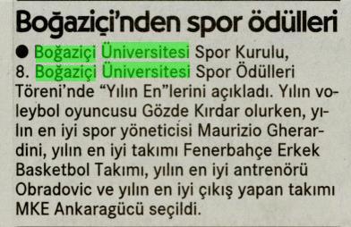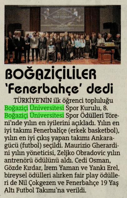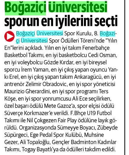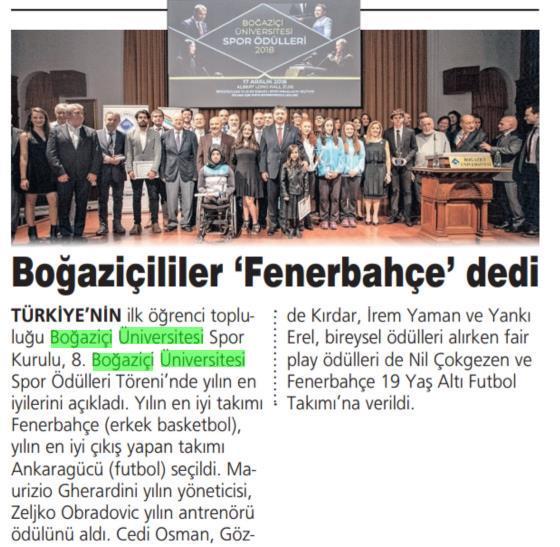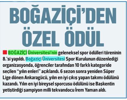 Boğaziçi Üniversitesi "Sporda En"leri seçti