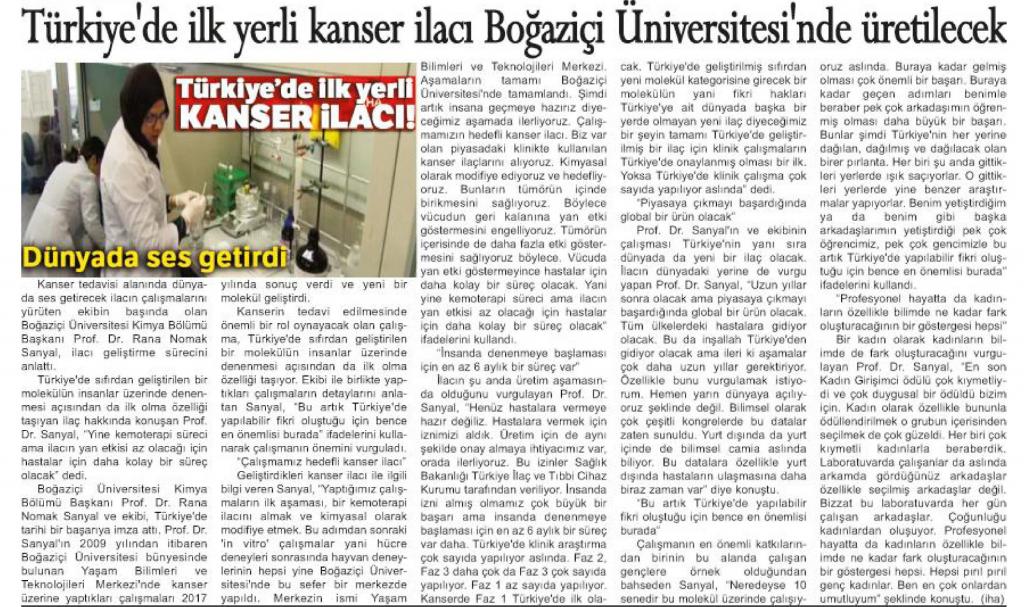 Boğaziçi Üniversitesi Türkiye'de İlk Yerli Kanser İlacını Üretecek