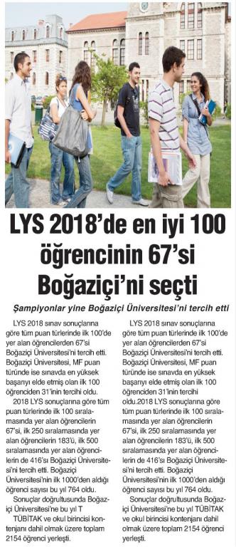 LYS 2018'de en iyi 100 öğrencinin 67'si Boğaziçi'ni seçti