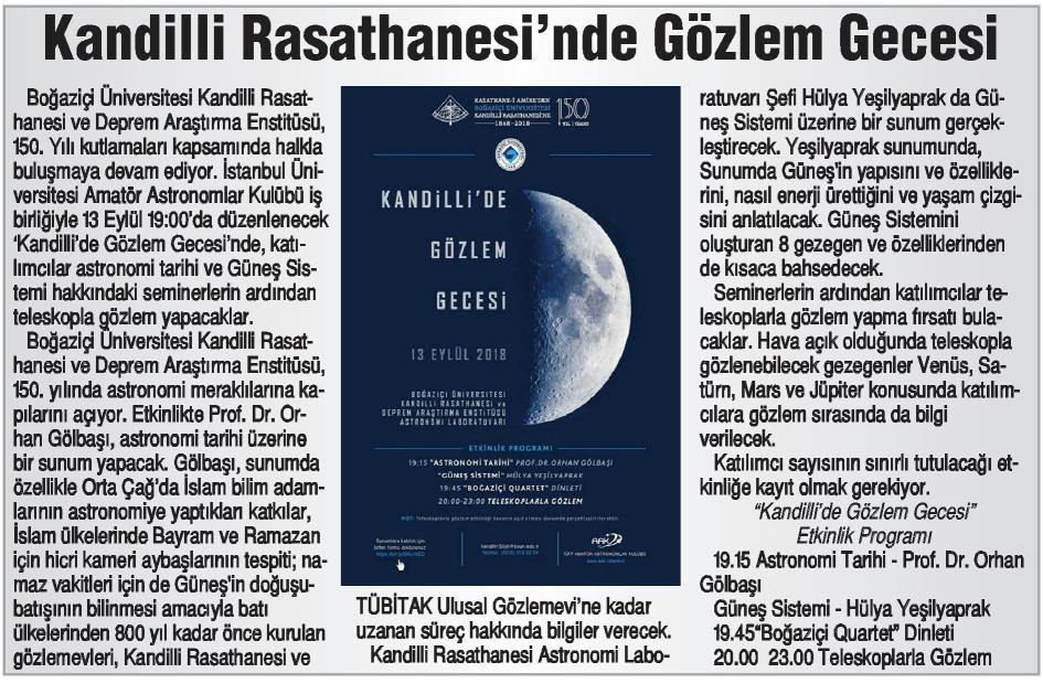Kandilli'de gözlem gecesi yapılacak