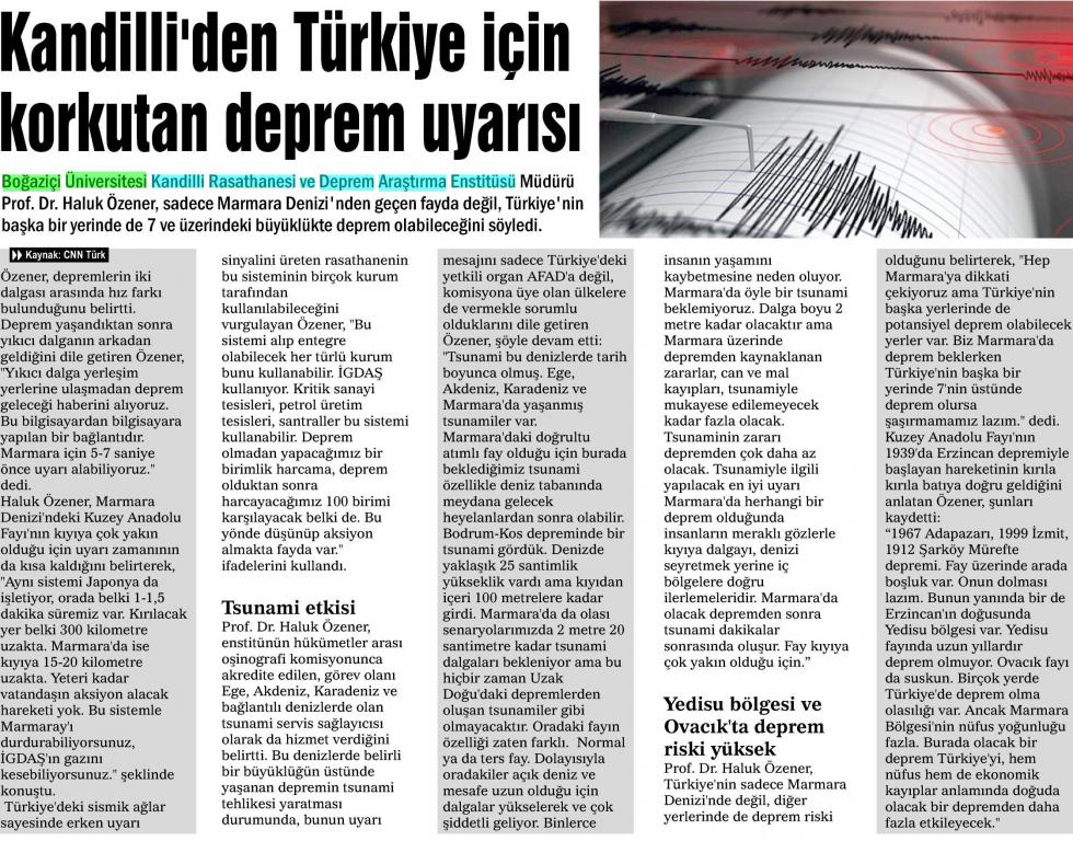 Kandilli'den Türkiye için korkutan deprem uyarısı