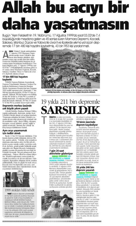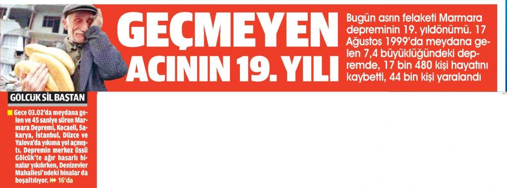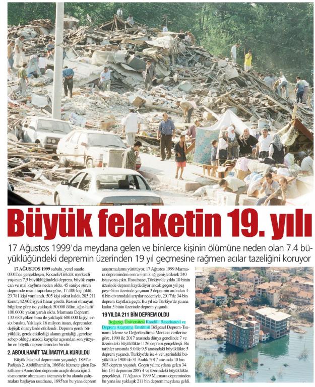 Büyük felaketin 19. yılı