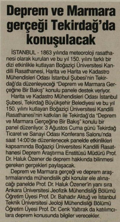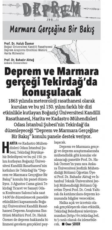 Deprem ve Marmara gerçeği Tekirdağ'da konuşulacak
