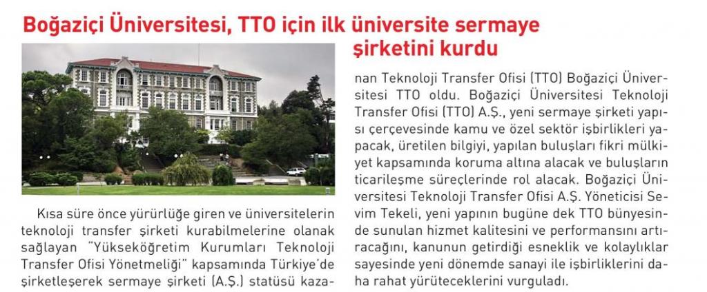 Boğaziçi Üniversitesi, TTO için ilk üniversite sermaye şirketini kurdu