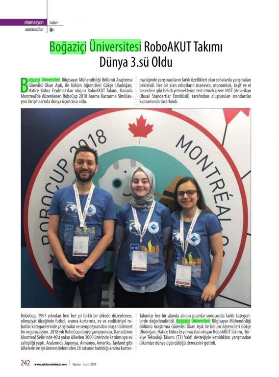 Boğaziçi Üniversitesi RoboAKUT Takımı Dünya 3.sü Oldu