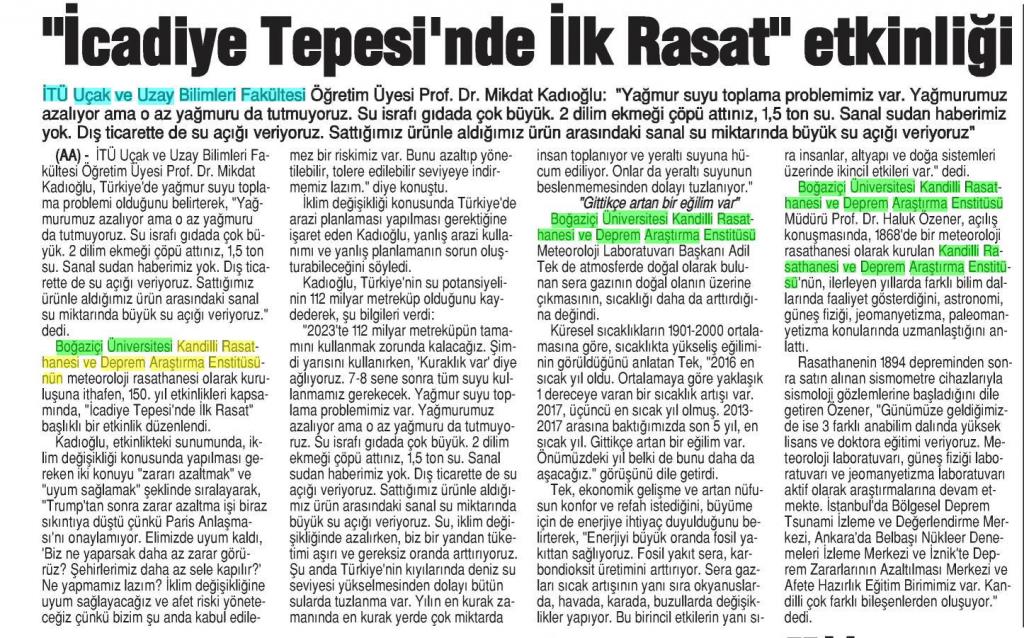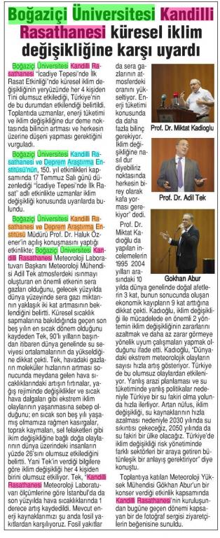 Boğaziçi Üniversitesi Kandilli Rasathanesi küresel iklim değişikliğine karşı uyardı