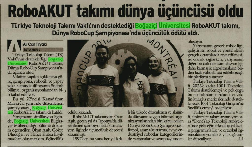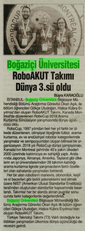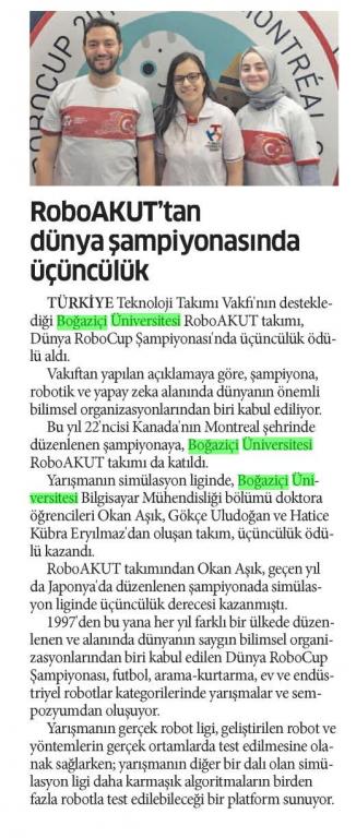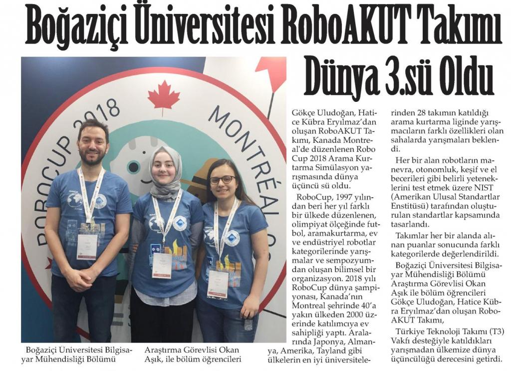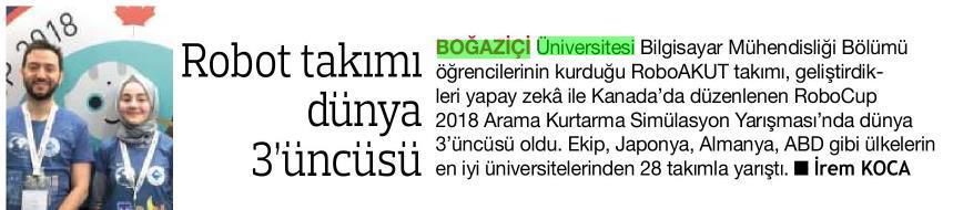 Boğaziçi Üniversitesi RobotAKUT Takımı Dünya 3.sü Oldu
