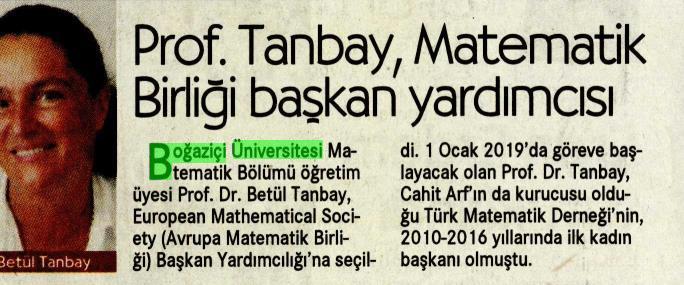 Prof. Betül Tanbay Matematik Birliği başkan yardımcısı