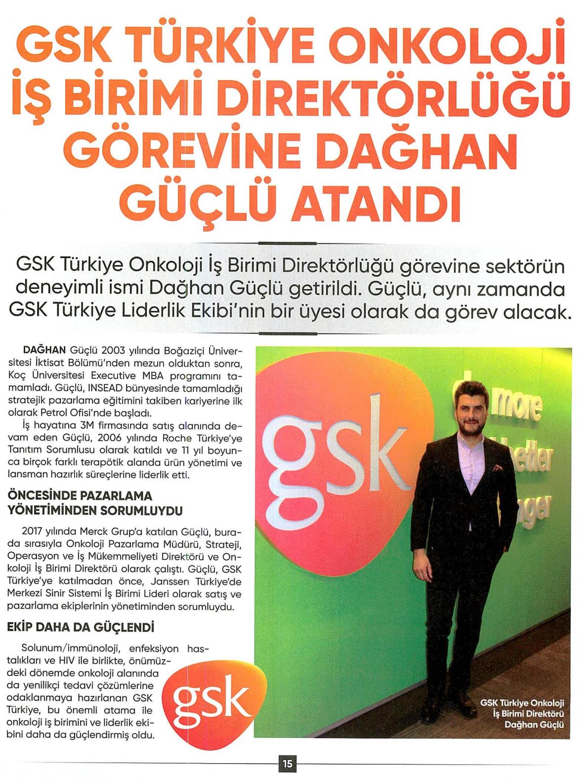GSK Türkiye Onkoloji İş Birimi Direktörlüğü görevine Dağhan Güçlü atandı