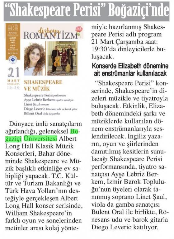 Shakespeare Perisi Boğaziçi'nde