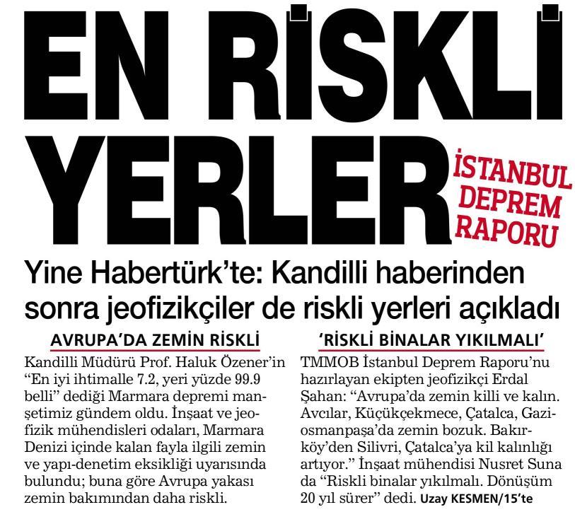 "Avrupa Yakası daha büyük risk altında"