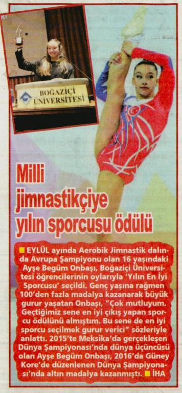 Milli jimnastikçiye yılın sporcusu ödülü