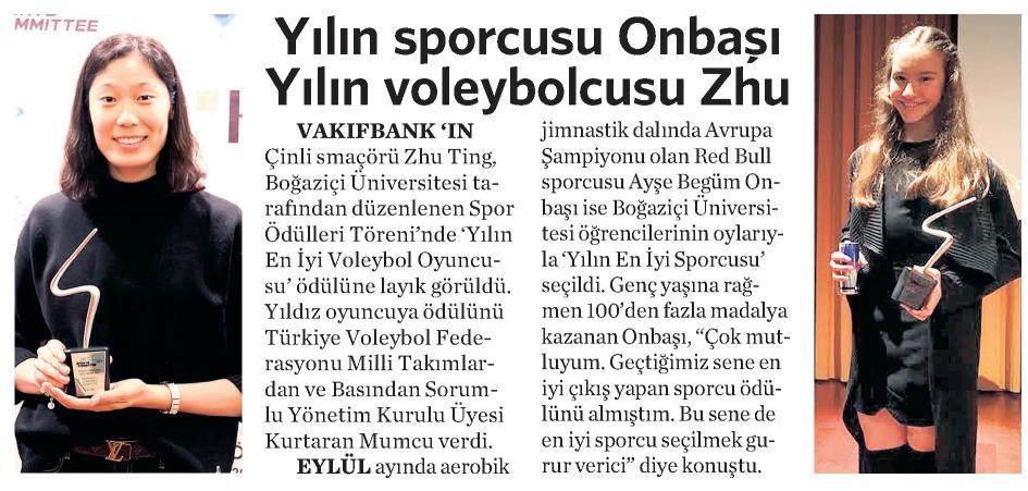 Yılın sporcusu Onbaşı Yılın voleybolcusu Zhu