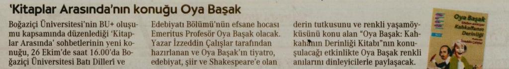 Kitaplar Arasında sohbetlerinin konuğu Oya Başak olacak