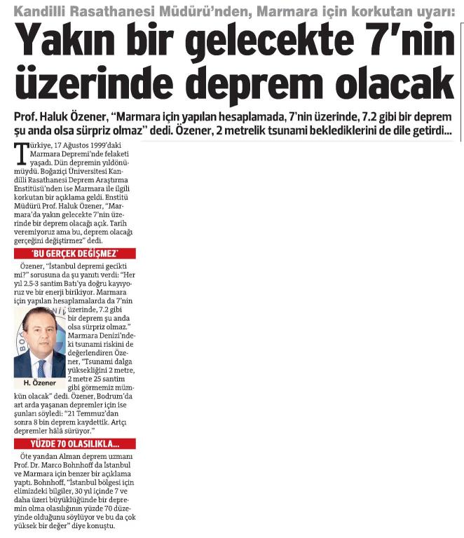Yakın bir gelecekte 7'nin üzerinde deprem olacak