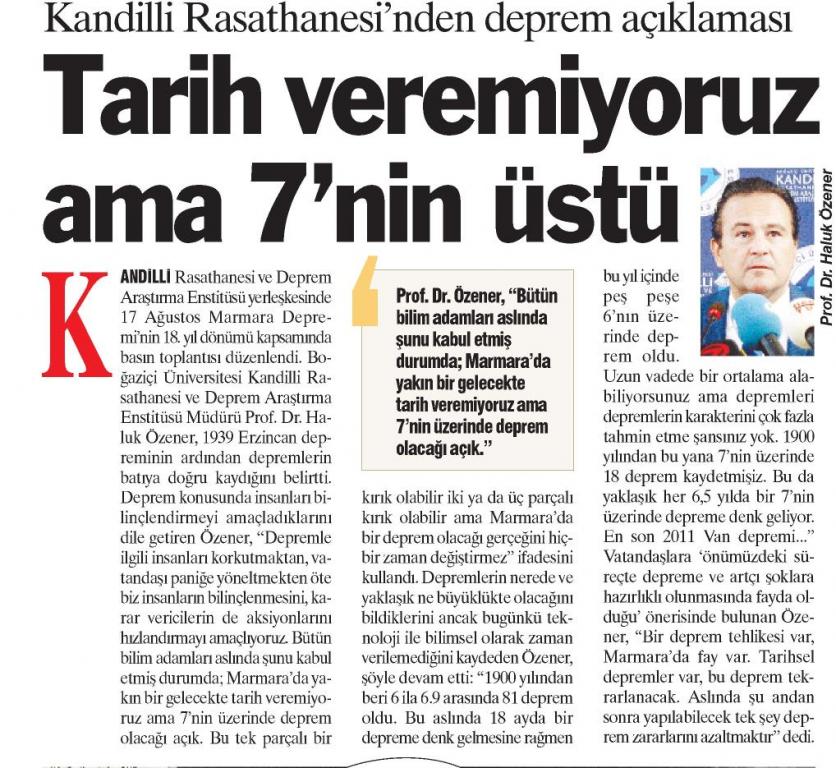 Kandilli Rasathanesi'nden deprem açıklaması: Tarih veremiyoruz ama 7'nin üstü