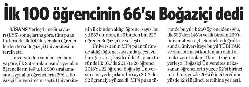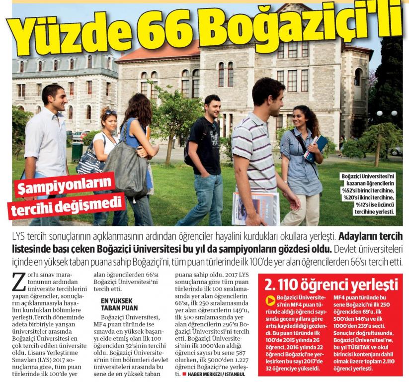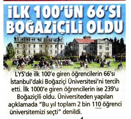 İlk 100 öğrencinin 66'sı Boğaziçi dedi