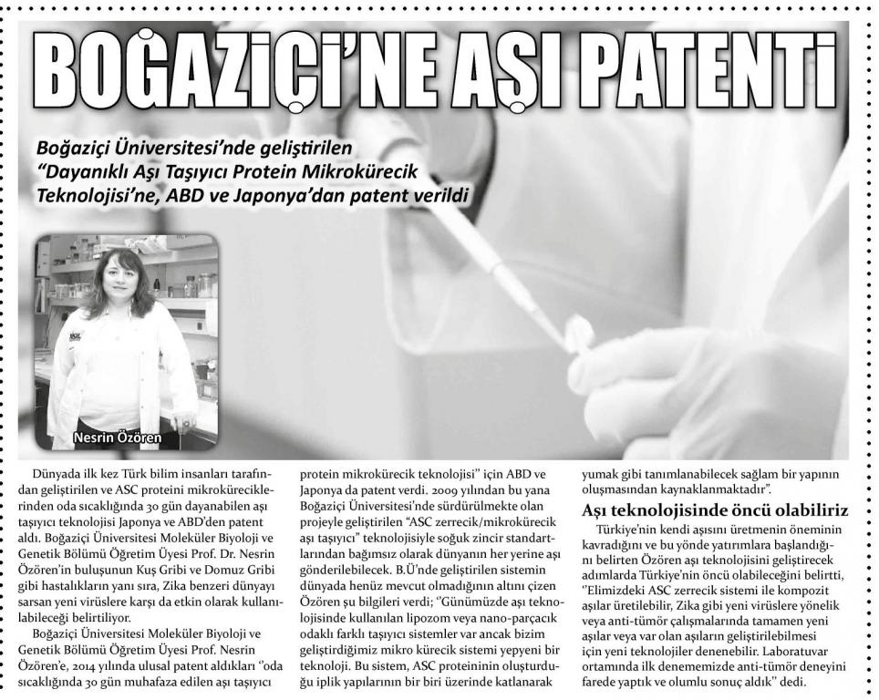 Boğaziçi'ne aşı patenti
