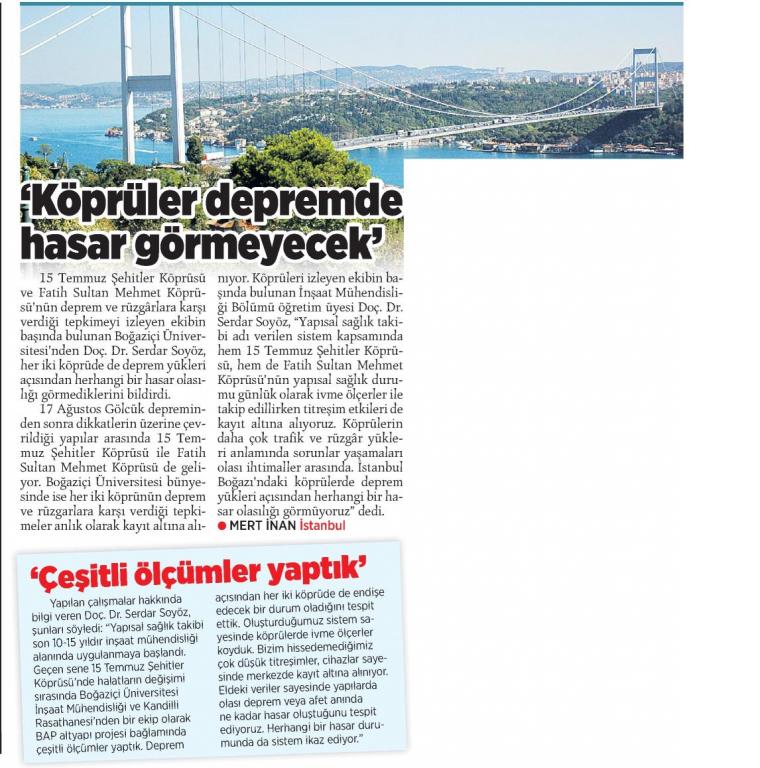 Köprüler depremde hasar görmeyecek