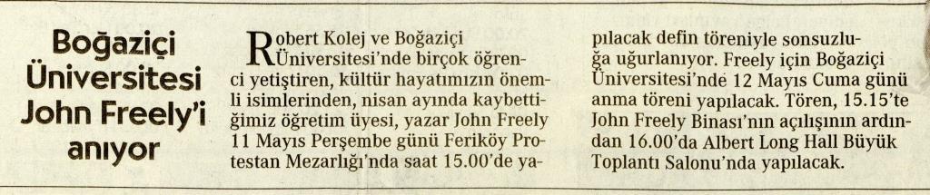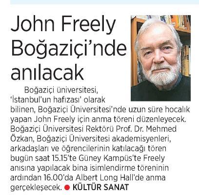 Boğaziçi Üniversitesi John Freely'i anıyor