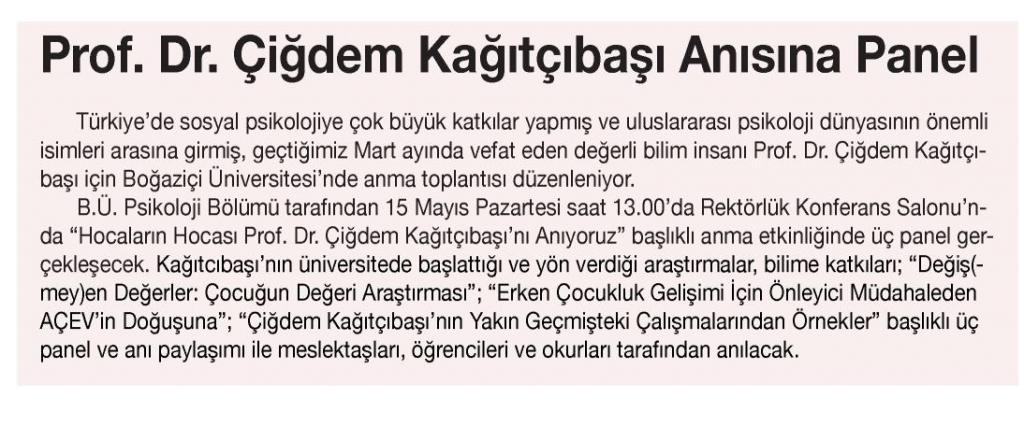 Prof. Dr.Çiğdem Kağıtçıbaşı anısına panel