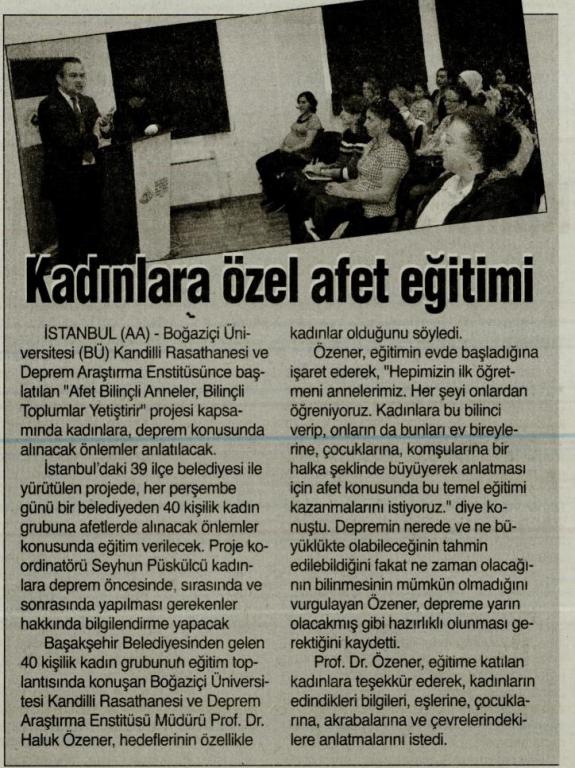 Kandilli Rasathanesi'nden Annelere Deprem Eğitimi