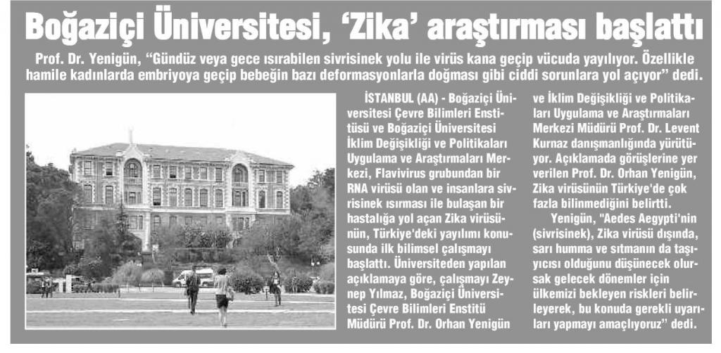Boğaziçi Üniversitesi Zika araştırması başlattı