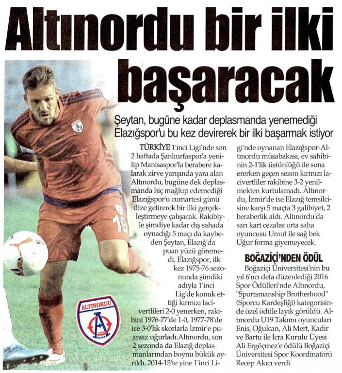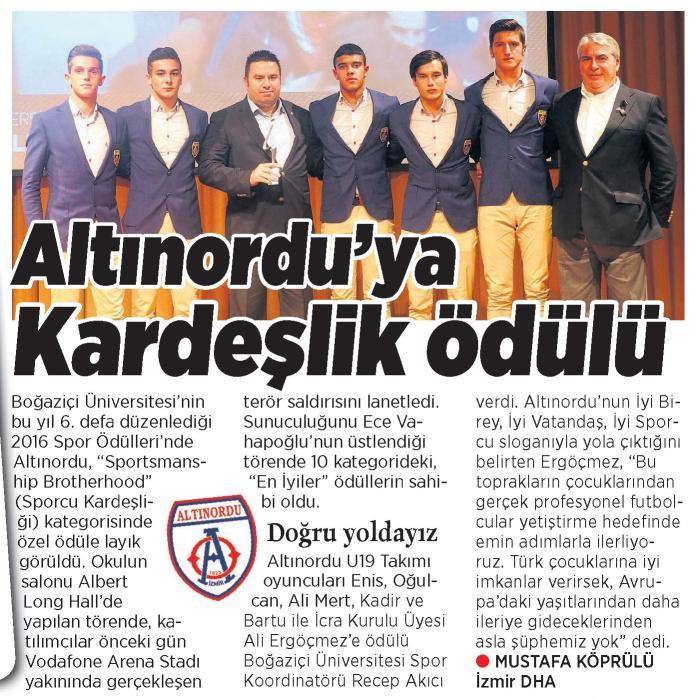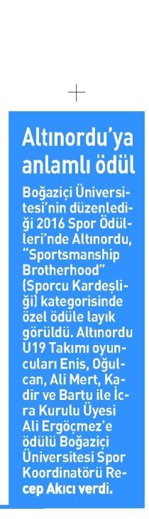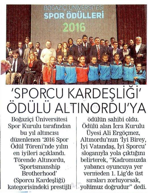'Sporcu Kardeşliği' Ödülü Altınordu'ya
