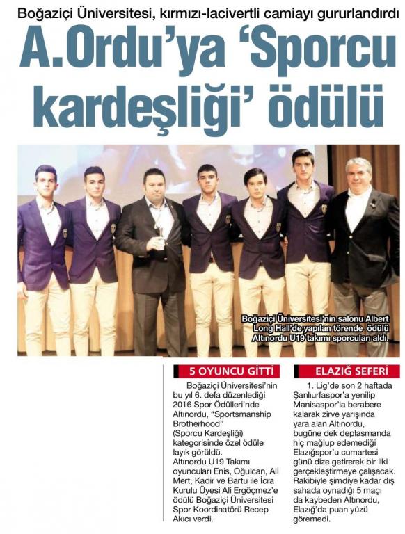 A. Ordu'ya 'Sporcu kardeşliği' ödülü