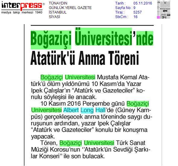 Boğaziçi Üniversitesi'nde Atatürk'ü Anma Töreni